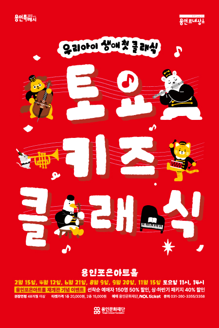 As one of the signature children’s programs presented by the Yongin Cultural Foundation, this family-friendly performance features opera, Korean traditional music (gugak), film soundtracks, reinterpreted through classical melodies with explanations tailored to young audiences.