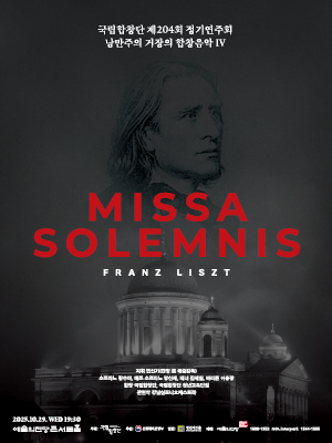 국립합창단이 국내 초연하는 리스트의 <Missa Solemnis>는 후기 낭만주의의 색채와 대담한 화성이 돋보이는 걸작 미사곡이다. 대규모 합창·오케스트라·독창이 어우러져 경건함과 극적 구성을 완성하며, 섬세한 음향으로 깊은 몰입을 선사한다.