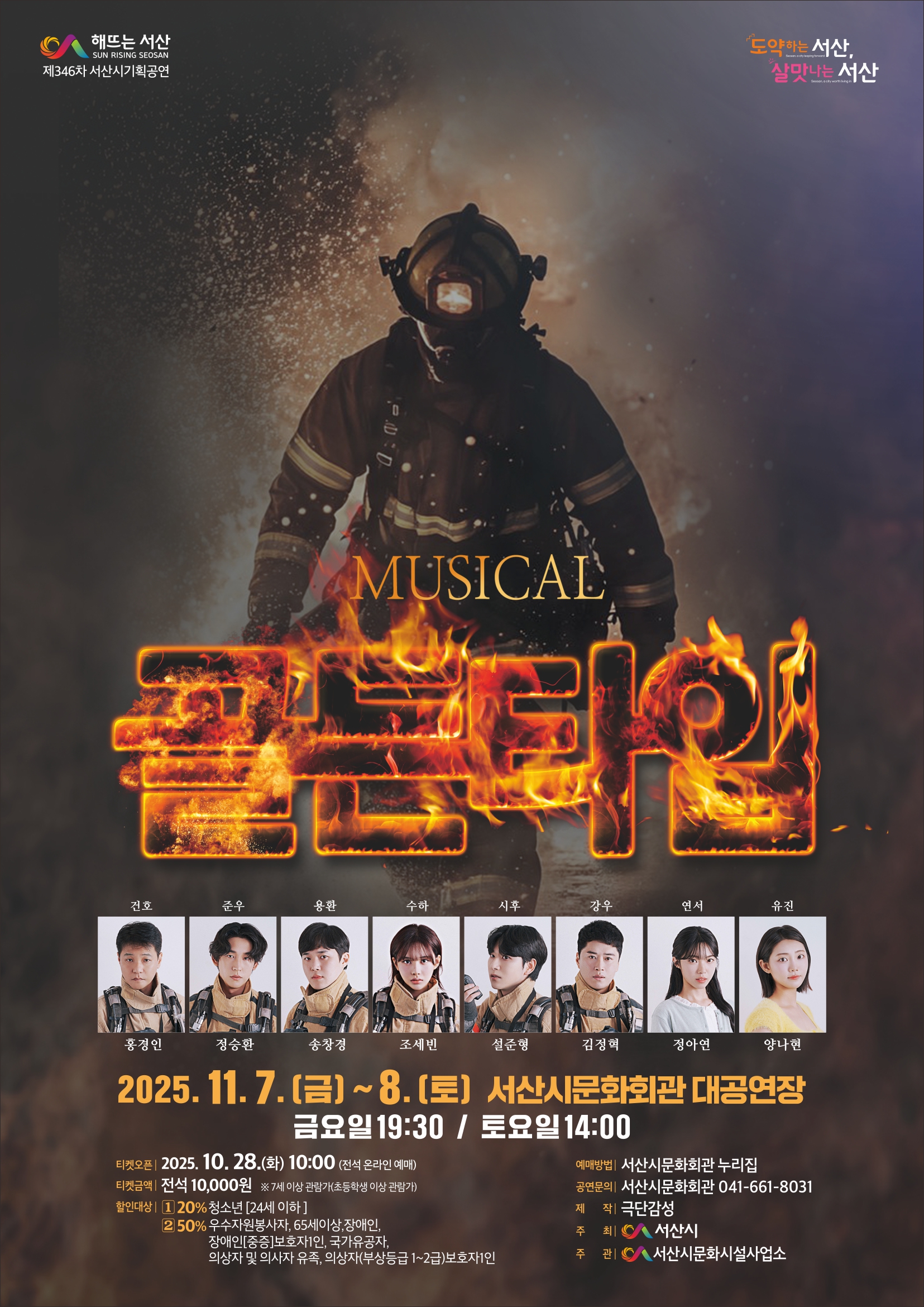 신입 소방관과 동료들이 대형 화재 속에서 서로를 지키며 용기와 사명감을 발휘하는 이야기를 담은 무대다. 위험 속에서도 포기하지 않는 이들의 뜨거운 심장을 전한다.