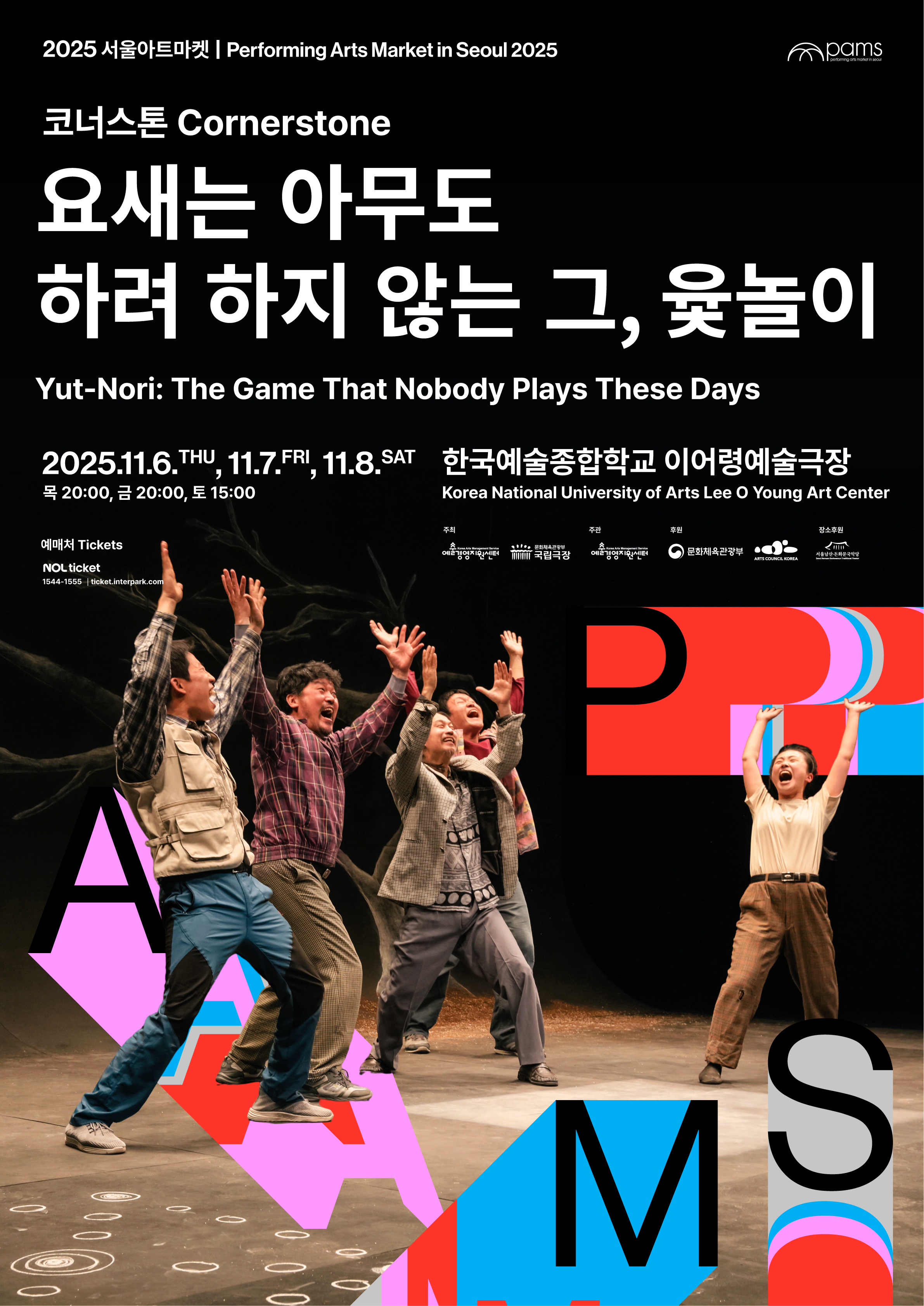 故 윤조병의 희곡을 재창작한 무대. 윷놀이는 인생의 은유가 되어 삶과 죽음, 과거와 현재가 교차한다. 단출한 오브제로 시대의 단절을 비추며, 극단 코너스톤은 관객과 함께 ‘연극의 집’을 짓는다.