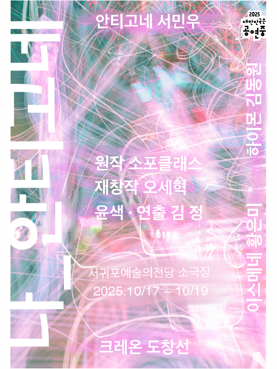 그리스 비극 〈안티고네〉가 제주 4·3의 기억 위에서 새롭게 태어났다. 죽은 오빠를 묻으려 했던 고전의 안티고네는 여기서 사라진 목소리를 발굴하는 심방이 된다. 국가 권력과 맞서는 그녀는 무가를 통해 땅에 스민 붉은 기억을 드러내며, 관객을 증언과 역사 발굴의 현장으로 이끈다.