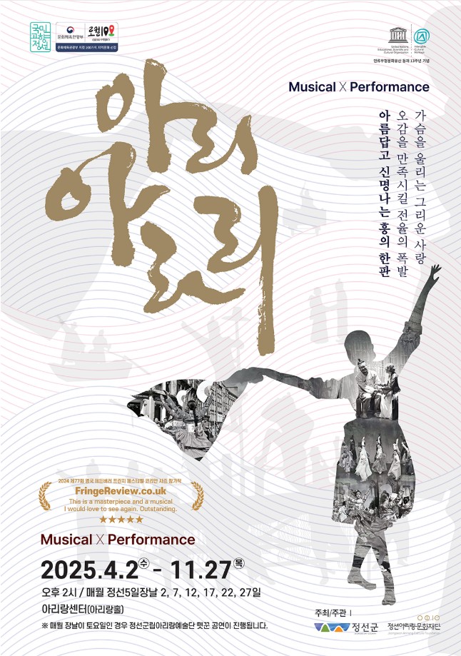 아리아라리'는 정선아리랑을 주젤, 무용, 타악, 음악 등을 조합한 종합 퍼포먼스 공연입니다.